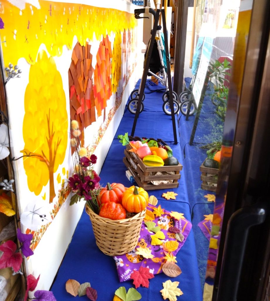 秋と言えばハロウィンと紅葉に落ち葉。そして実り。今回はハロウィン色をほんの少し紛れ込ませています。