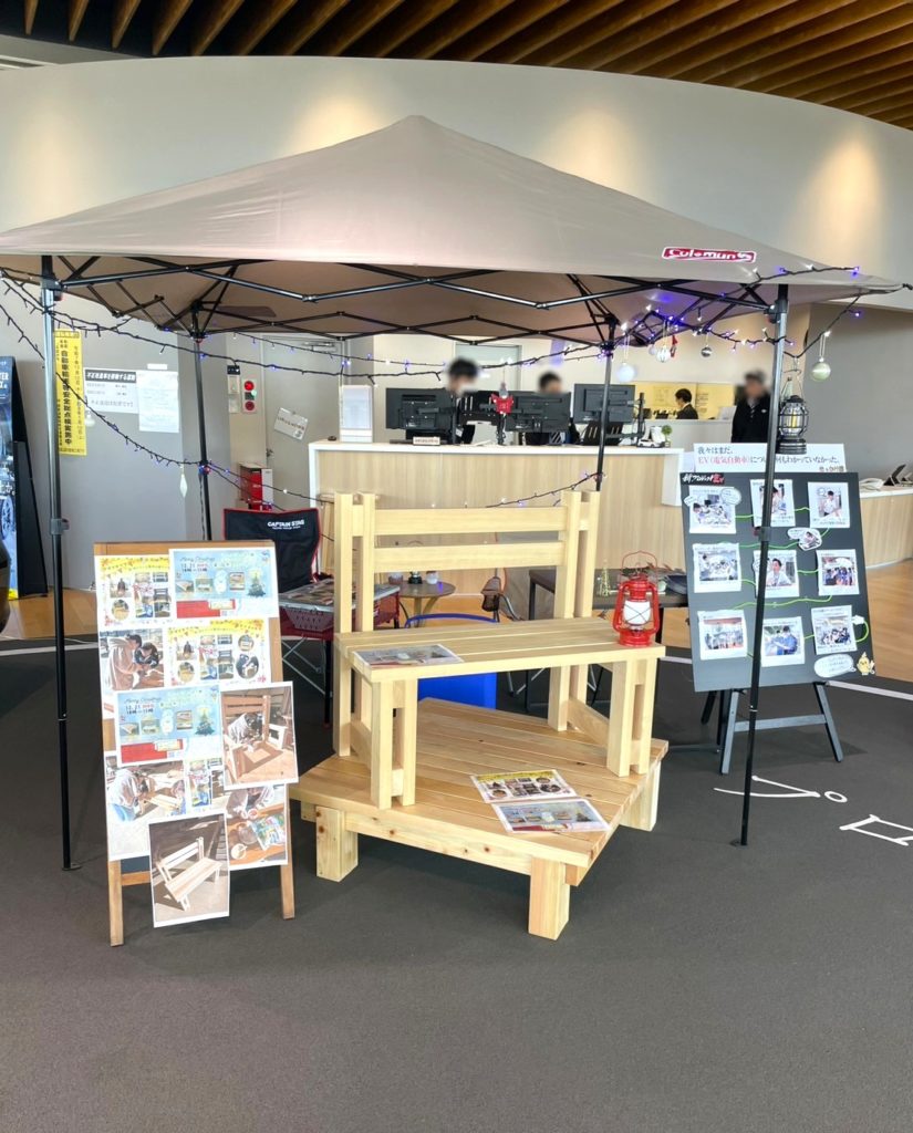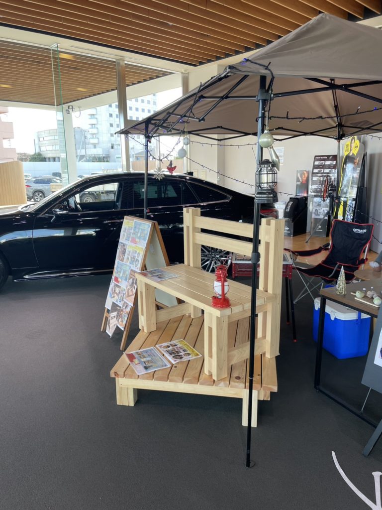 何と、木工イベントで制作したベンチとデッキを、「ネッツトヨタ栃木・西那須野店」さんのショールームで展示してくださっているんです~!!