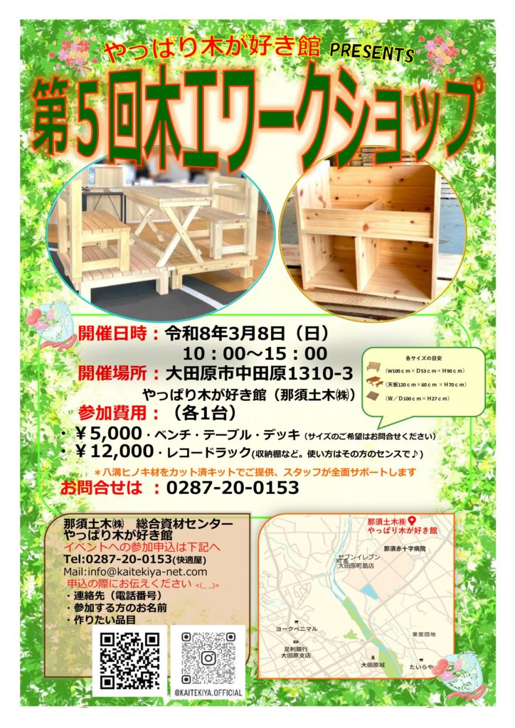 さて、この「木工ワークショップ」は既に第5回の開催日程が決まっております。