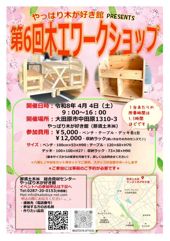 下記が次回ワークショップのお知らせと、TOKO-TOKOおおたわら「春恒例イベント」への出店の告知です。